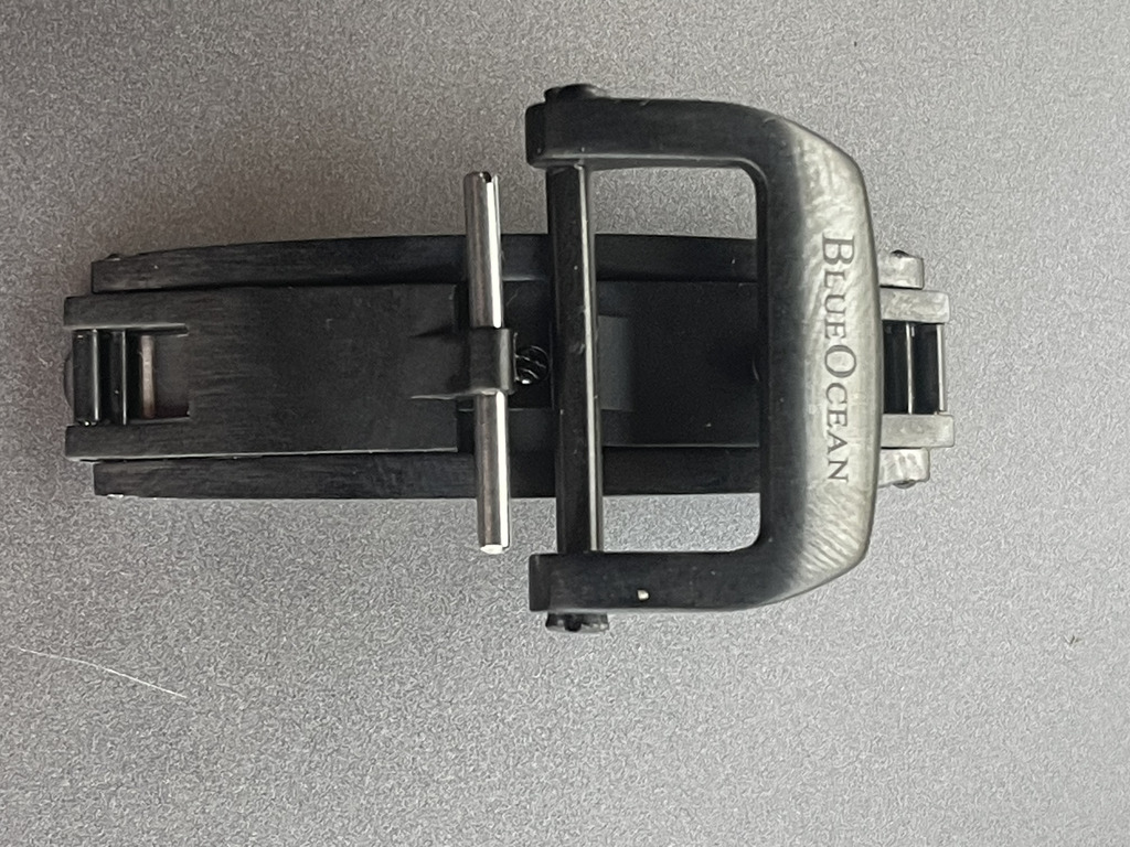 Fecho deployant com sistema de mola em aço escovado.