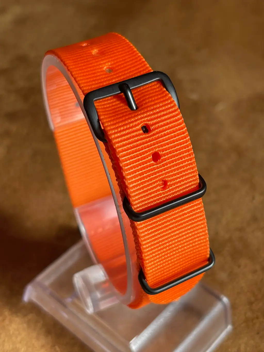 Pulseira Nato em nylon  Laranja anéis PVD Preto